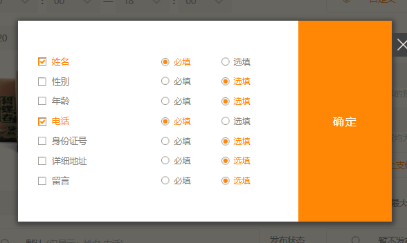 2.需要注意的地方有:图一:“用户信息”中默认的为姓名与电话,点击自定义也可以选择其他需要填写的内容;图二:“预约时间段”我们有两种形式,一种是按照营业时间间隔来显示,一种是可以自定义时间段进行编辑,点击“自定义”会出现弹框,里面可以选择时间;图三:如果需要服务人员,点击“服务人员”里面可以添加服务人员的信息,以及库存量(库存量是这个时间段下该服务人员可以被预约的次数),弹框的上方也可以为所有服务人员设置统一库存量,如图所示: